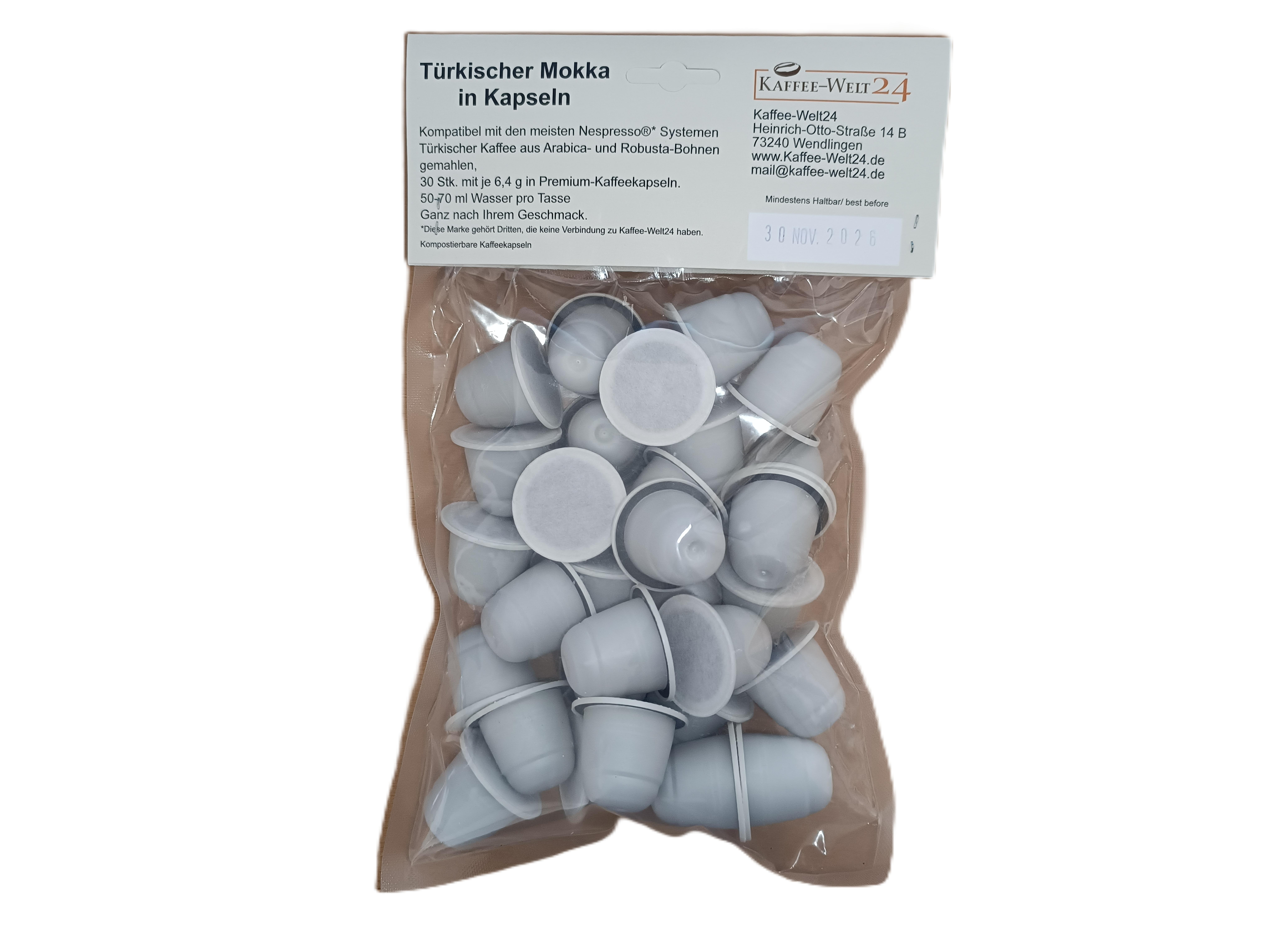 Türkischer Mokka in Kapseln 30 Stück = 14,69 € / Beutel ab 6 Beutel 13,99€ |