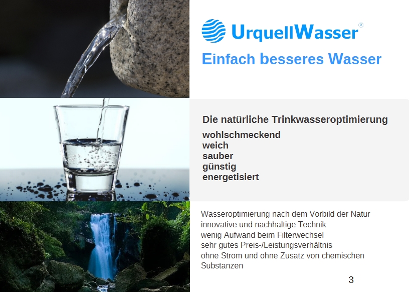 Frisch gefiltertes und sauberes Trinkwasser lässt sich im Handumdrehen mit Urquell Wasser herstellen. Die Filterpatrone befreit das Wasser erfolgreich von Schmutzpartikeln - so entsteht gereinigtes und weiches Wasser. Aus einfachem Leitungswasser werden so unzählige Liter wohlschmeckendes und günstiges Trinkwasser.